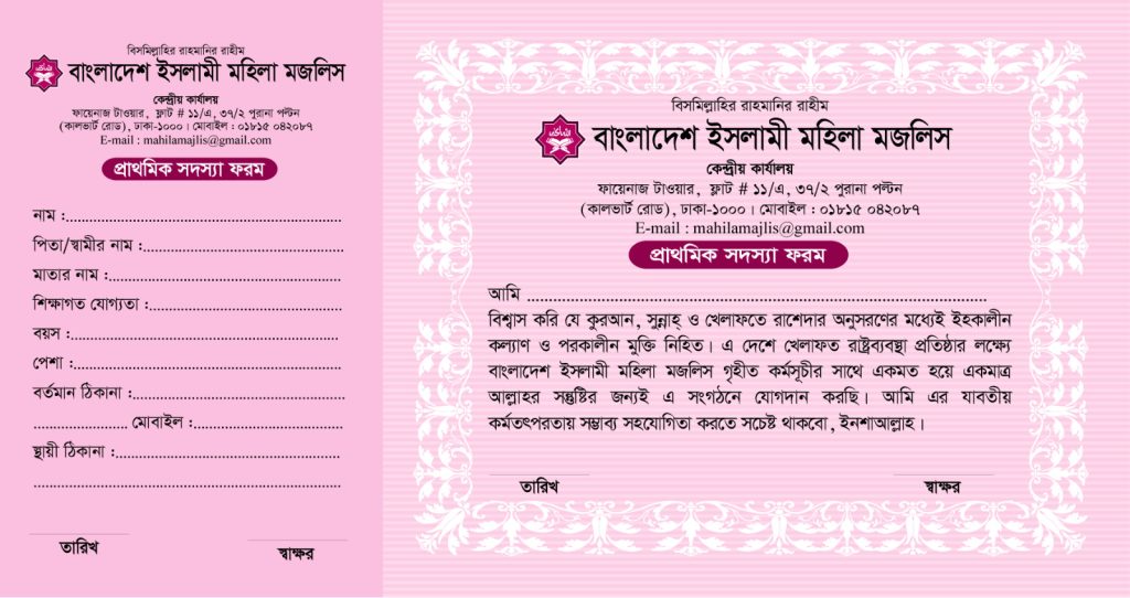 প্রাথমিক সদস্য ফরম-মহিলা মজলিস