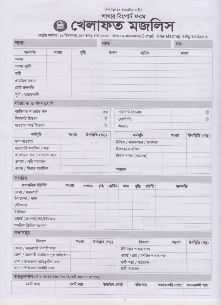 শাখা রিপোর্ট ফরম